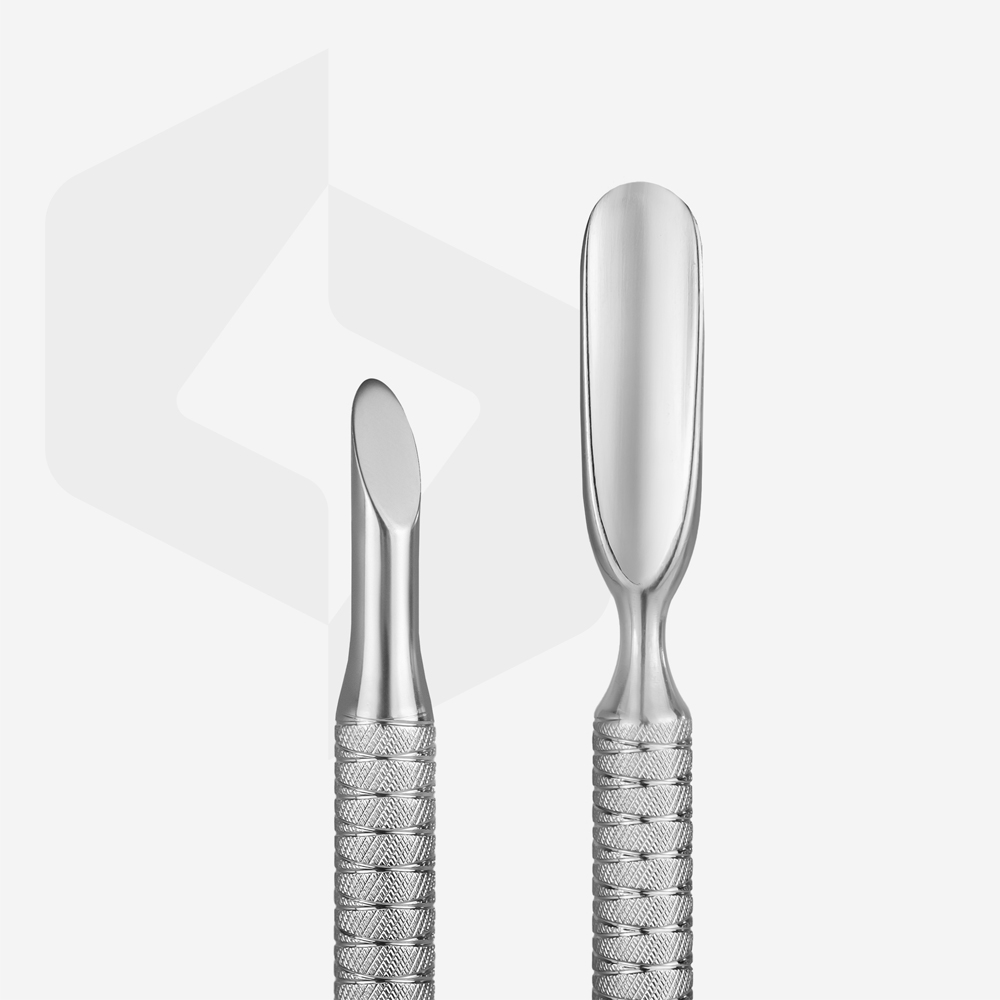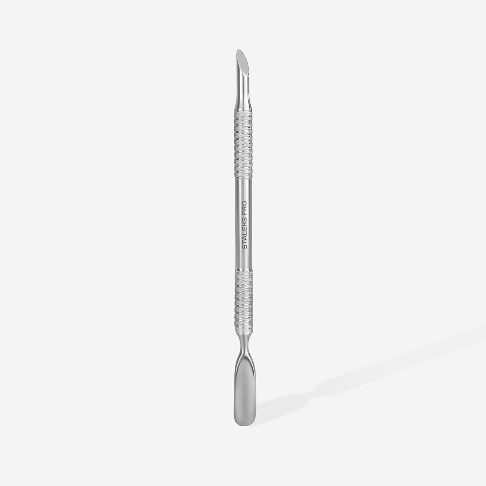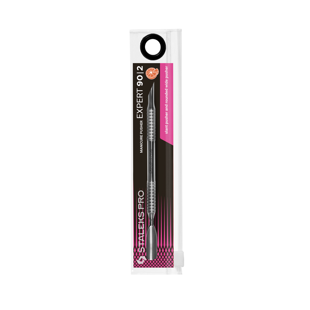 Staleks Pusher Expert 90/2. La línea de Staleks Pro pone a tu disposición un pusher de una calidad superior. Este pusher está diseñado específicamente para deslizarse sobre la uña sin provocar ninguna agresión tanto a la uña como a la cutícula. Su contorno redondeado, delgado y afilado nos permite deslizarnos por el surco de una manera fácil y segura. El otro extremo del pusher nos permitirá finalizar una correcta limpieza.